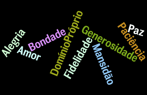 Alegria: A alegria, como fruto de Deus em nós, significa um estado permanente de graça diante do Senhor, uma satisfação constante pelo fato de ser um instrumento nas mãos do Altíssimo para ajudar os outros.